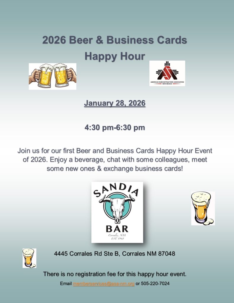 January 28, 2026 4:30pm – 6:30pm Sandia Bar 4445 Corrales Rd Ste B, Albuquerque, NM 87048 January Beer & Business Cards