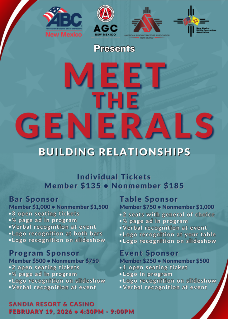 February 19, 2026 4:30pm – 9:00pm Sandia Resort and Casino https://addmi.com/e/2026-meet-the-generals-OaRM4NNvbjc7grhufKR